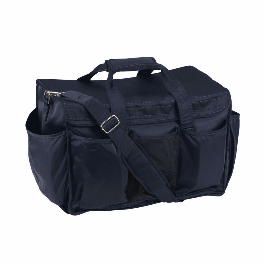 En praktiskt och oerhört snygg ryktväska från Eskadron, denna har en satinliknande finish och ett lock som enkelt stängs med kardborre. Denna fantastiska groomingbag har flera öppna och stängda fack både på in och utsidan samt en stabil avdelare inuti. På denna avdelare sitter de gummiband fästa så sakerna du sätter ner i dem hålls på plats. De har både kortare bärhantdag och en längre avtagbar axelrem vilket gör det enkelt att ta med den på tävlingen eller vart du än kan tänkas behöva den.